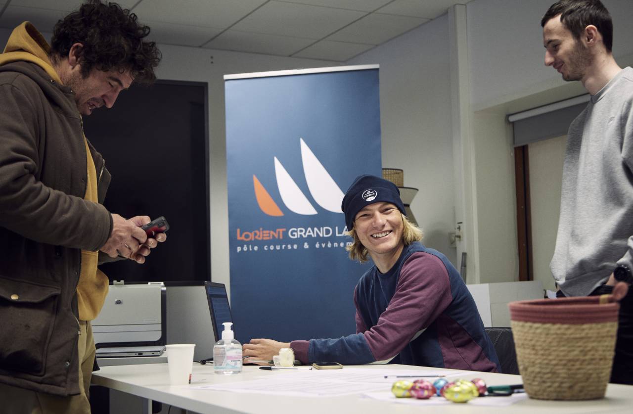 Sur les pontons, on ne peut pas le louper. À bord de son Grand Soleil 37, estampillé bateau comité, ou de l’un des Mini 6.50 participant à la course, Jean-Noël est sérieux, mais souriant, son manteau rouge d’arbitre officiel FFV sur les épaules, son bonnet Plastimo Lorient Mini 6.50 vissé sur la tête et son carnet à la main. Son rôle ? S’assurer que les participants possèdent bien leur matériel de sécurité et qu’ils sont en conformité avec les règles de classe. « Je gère la partie sécurité et égalité sportive entre les bateaux, résume-t-il. À trois jours de la course, on est plutôt axé sur les contrôles des équipements, on vérifie que tout est bien à bord et à jour de validité. Après la course, on vérifiera que tout est encore là, que rien n’a été débarqué en mer. » « On », c’est l’ensemble des bénévoles mandatés par le Centre Nautique de Lorient, qui en binômes, procèdent aux mêmes contrôles. « Il y a pas mal de jeunes, c’est sympa à voir, on est plutôt impressionnés par leur niveau de préparation, avoue l’un deux. Il n’y a pas beaucoup de choses à redire, ils sont plutôt prêts. » Une bonne chose, leur vocation première étant d’accompagner plus que réprimander nombre de navigateurs débutants. « Pour une première course, au début d’un nouveau cycle de préparation pour la Mini, il y a un véritable aspect pédagogique, explique Jean-Noël. On leur fait tout sortir pour s’assurer qu’ils savent où se trouve tel instrument, tel moyen de couper le gréement, comment on fait… » Moins gendarmes qu’anges gardiens, ces arbitres savent en effet ce que représente un départ de course, eux qui sont tous ou presque d’anciens régatiers. À l’instar des « Trois Mousquetaires » (qui sont en réalité cinq), Patrick, Didier, Yves-Marie, Louis et Pierre-Alain, à l’heure de l’apéro, l’oeil rieur, sur le bateau mouilleur : « On a pratiqué la voile, à l’époque on a nous aussi bénéficié des anciens qui donnaient un coup de main, maintenant on renvoie la balle ! »