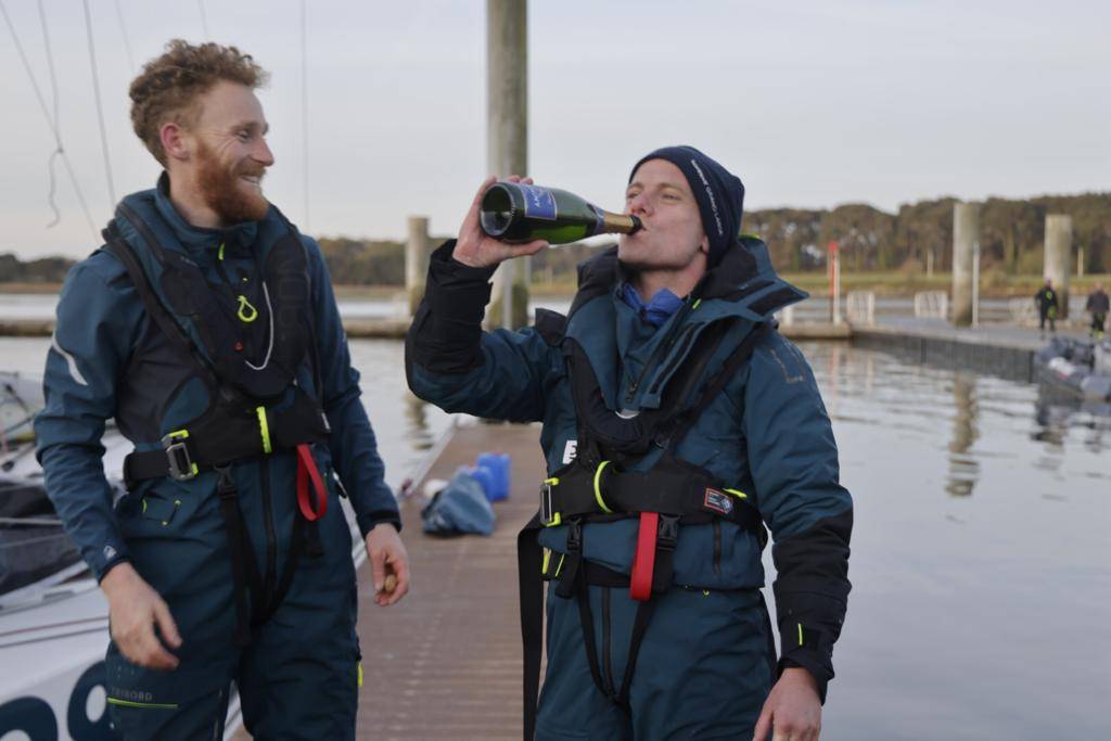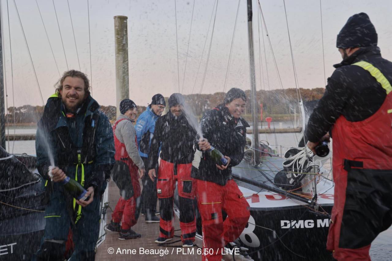 Les arrivées se sont enchaînées ce dimanche matin, à peine 24 heures après le départ. Les premiers furent Laure Galley et Rémi Aubrun, à bord du plan Raison n°1048 (DMG Mori Sailing Academy 2) qui ont mené la course quasiment de bout en bout. Leader depuis samedi midi, au moment de dépasser la presqu’île de Quiberon, le duo n’a en effet plus lâché la tête de flotte, simplement inquiété durant la nuit puis sur un dernier bord sous spi, lors duquel Pierre Le Roy et Tanguy Leglatin ont fait parler la poudre à bord de TeamWork (n°1019). Mais Laure et Rémi ont tenu bon et s’imposent après 21 heures et 19 minutes de course, cinq petites minutes devant leurs dauphins, qui ne boudent pas leur deuxième place. « On arrive deuxième mais ce n’est pas vraiment révélateur de la course, tout s’est joué à la fin » concède Pierre Le Roy, qui rafle la deuxième place en Proto à Robinson Pozzoli et Luke Berry. Un moindre mal pour l’équipage du n°1026, un plan Finot-Conq tout récemment mis à l’eau. « Ma plus belle réussite, c’est déjà d’avoir pris le départ, après deux ans et demi à construire mon bateau », déclarait son heureux skipper. Un podium 100% étraves rondes et composé, sans grande surprise, de duos « mixtes » entre nouveaux et anciens Ministes.