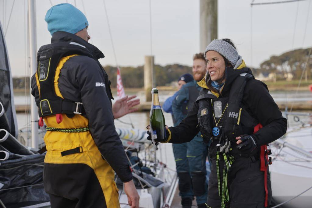 1031 - Victoire Martinet : « On avait une super préparation avec un routage qu’on a suivi jusqu’à la fin, j’étais hyper impressionnée par le travail de Félix. Hier c’était magique : descente sous spi, sous le soleil… Et puis on s’est retrouvé dans la pétole pendant la nuit, avant de se faire cueillir par 20-25 noeuds en remontant sur Groix. C’était trop bien et c’est une belle surprise d’être sur le podium, car on voyait plein de bateaux arriver, sans savoir si c’était des Proto ou des bateaux de Série. »