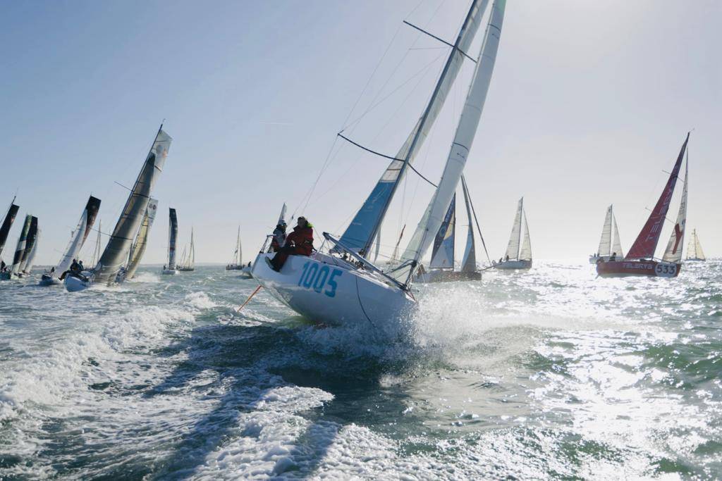 C’est reparti pour la flotte des Mini ! Ils étaient 79 à s’aligner sur la ligne de départ ce samedi matin, après le désistement de six bateaux. Les numéros 392 - Soyouz (Clément Samon et Marion Berne), 892 - Kalon (Marie Chaussade et Benoît Le Guennec), 920 - Pogolap 1 (Guillaume Wehrlen et Armelle Nourissat), 997 - Tamak Tombolog (Augustin Osmont d'Amilly et Margot Vennin) et 1037 - Nòrya (Louis Wessels et Mary Vaughan-Jones) ont en effet renoncé à partir suite à différentes avaries survenues sur la première régate, tandis que le 974 - Résilience d’Henri Duval rentrait au port quelques minutes après avoir quitté le ponton, sa co-équipière Sandra Le Tohic victime d’un choc avec la bôme. 79 binômes donc, pour 95 milles entre Lorient, l’île de Groix, la baie de Quiberon et Belle-Île, le plus long des quatre parcours proposés par la Direction de course lors du briefing coureurs de vendredi soir. La dorsale qu’Yves Le Blevec surveillait encore à quelques heures du départ semblerait progresser moins rapidement que prévu et devrait donc permettre à la flotte d’effectuer la boucle dans un temps raisonnable.