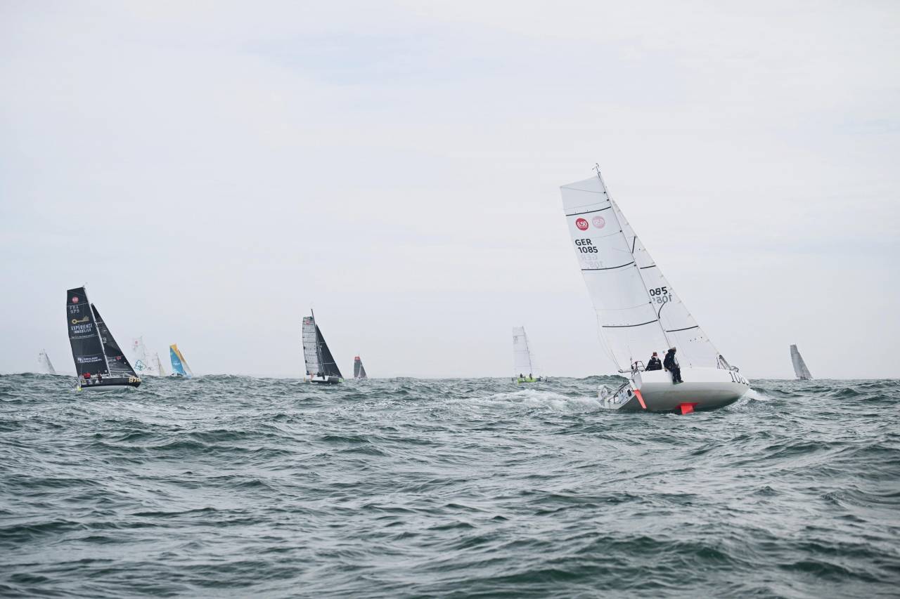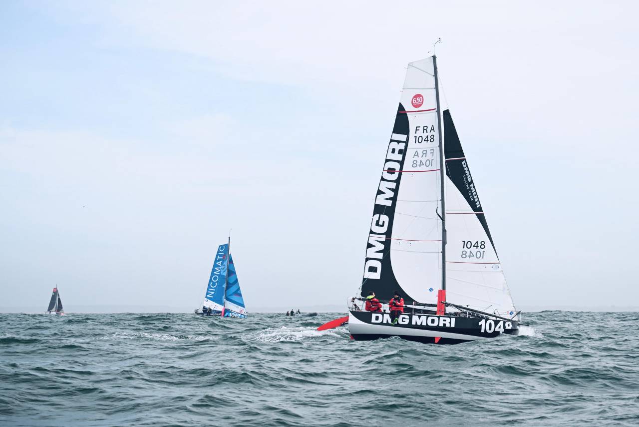 Pour l’heure, la descente se fait par vent de face, Alexandre Demange et Laure Galley (DMG Mori Sailing Academy 2) aux commandes de la flotte des Proto, Nicomatic accroché à leur tableau arrière, Caroline Boule et Benoît Marie bien décidés à contrôler leur avance de la veille. Côté Série même combat, où les premiers milles se jouent au contact avant d’aller déjouer le premier piège du jour : le redoutable passage de la Teignouse !