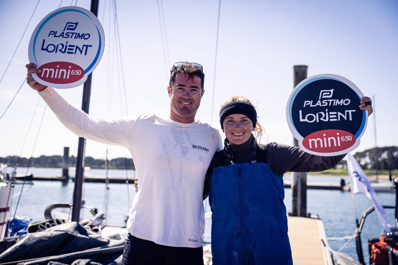 C’est un léger parfum de fin de règne qui flottait sur la remise des prix de la Plastimo Lorient Mini 6.50, samedi 11 avril à la Maison des Skippers de Lorient la Base ! Et c’est aussi le premier constat que tiraient les vainqueurs de cette douzième édition dans la catégorie « série » en arrivant au ponton. « C’est un plaisir de mettre un terme à la série de victoires de Paul Cousin, et je le savoure tout particulièrement », s’amusait ainsi Thomas André, qui avec sa comparse Margot Vennin, a mis 26 heures et 38 minutes pour boucler les 196 milles du parcours. Soit six minutes de moins que le dit Paul Cousin, qui associé cette année à la Japonaise Naho Takahara, n’aura donc pas réussi à signer sa quatrième victoire consécutive sur la PLM 6.50 !