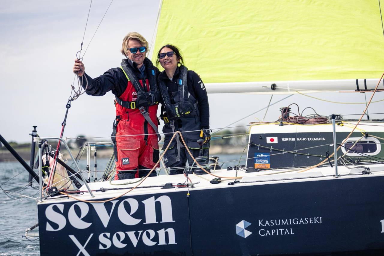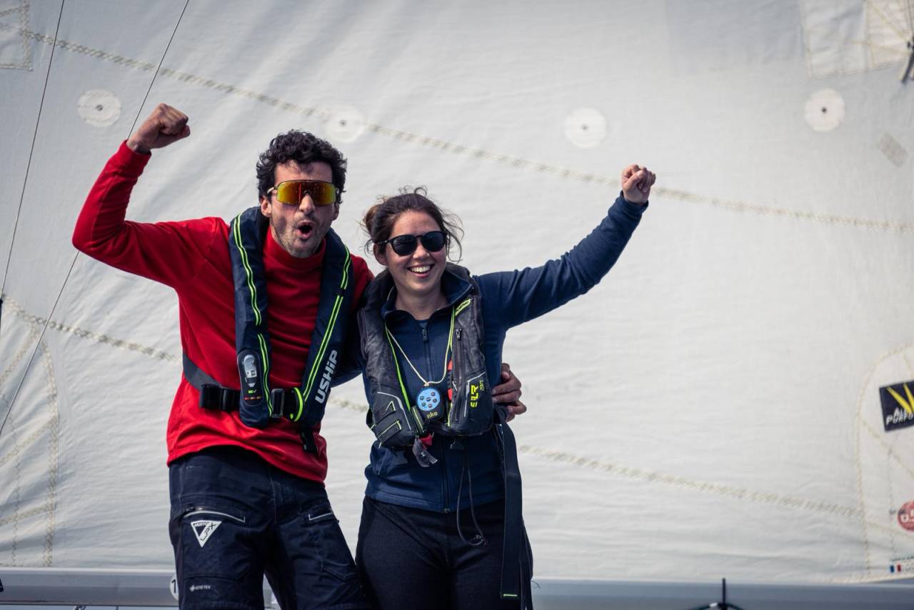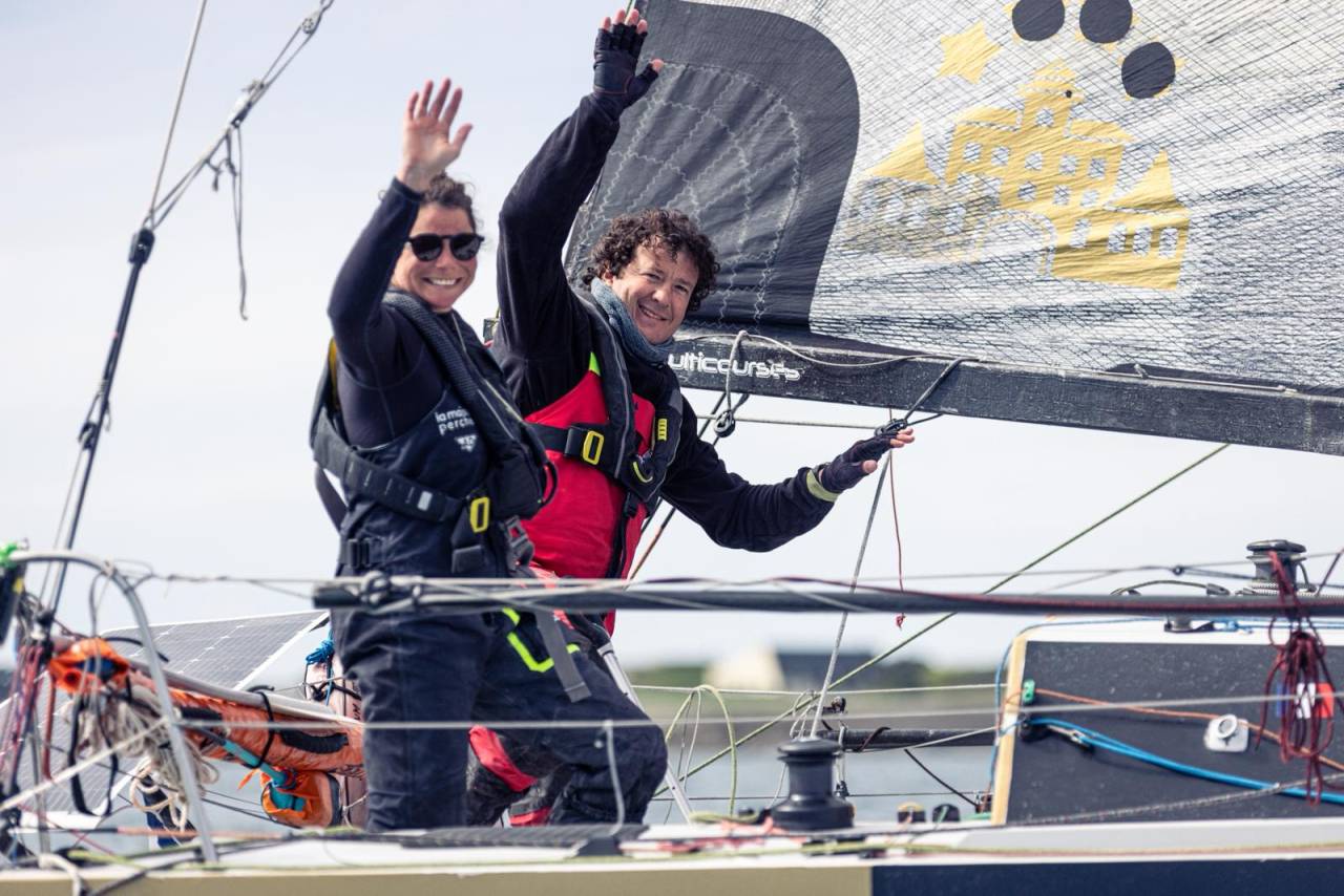 Côté prototypes, le couperet était lui tombé un peu plus tôt dans la nuit pour les tenants du titre Benoît Marie et Caroline Boule. Si la paire de Nicomatic – Petit Bateau cravachait bien en tête après le passage de Belle-Île, le démâtage de leur Mini à foils a eu raison de leurs ambitions. Secouru par la SNSM, qu’ils ont tenu à remercier pour « leur professionnalisme et leur gentillesse », le binôme a pu récupérer tous les morceaux de gréement, avant de tracter leur bolide à bon port. « C’est une étape qu’on aurait préféré ne pas vivre, mais on a eu de la chance : dix minutes plus tôt on se serait échoués sur les cailloux, soulignait Caroline Boule, qui doit reprendre la barre du prototype sur toute la saison 2026. Le tube s’est cassé en deux, on ne sait pas pourquoi. On va analyser ça, en tirer les conclusions et tout faire pour revenir le plus vite possible ! »